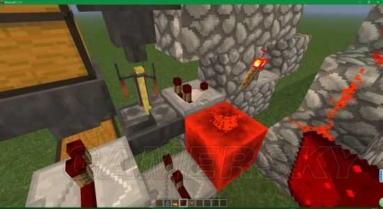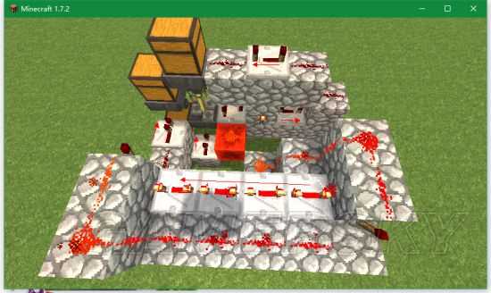 然后放上炼药炉和红石,注意按小箭头方向摆放,以及中继器档位不要搞错