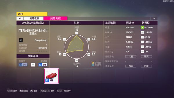 我这个可以380+稳定巡航,最高速度390,不用开TCR和ESP,收益最大化。