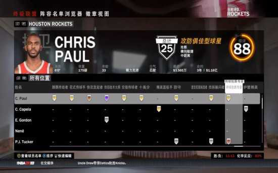 在NBA 2K19中,也对火箭起伏不定的状态做出了反应:调整了火箭战术板、调低了一部分球员的能力值。