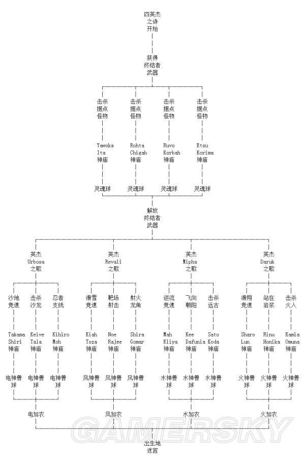 《塞尔达传说荒野之息》英杰之诗DLC已经上线,这款DLC制作精良,内容十分丰富,相信不少玩家还不清楚其大致的流程,今天小编就为大家带来了《塞尔达传说荒野之息》英杰之诗DLC主线流程图,希望大家能够有清晰的游戏思路。