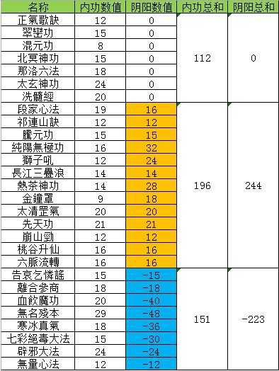 可以看出,无论是阴还是阳,都可以练到200以上,不过阴性内力开局难一点。