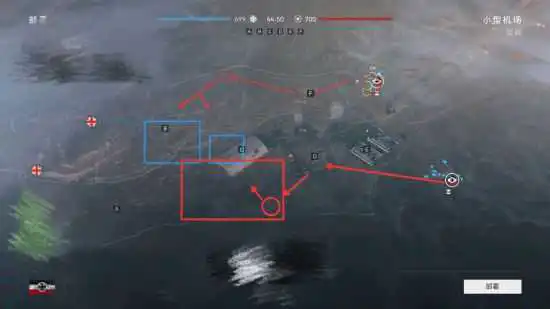 首先讲一下德军上位打法,如果你的枪法很一般,那么开局开小车去占领F点夺取征服分,然后移动到红色⭕处,布置信标。(那个位置有一块石头可以完美的藏好)走到指向c 点的红色箭头处,拿出望远镜,标记赚分,测距。在红色箭头处打c 点的蓝色方块处的敌军,这个距离密位60,瞄头稍微高1毫米即可爆头。这个清理过后,如果有小队,那么利用高点配合小队进攻B 点,控制蓝色区域。这是侦察控图流打法,如果你的枪法很水,会很难杀到人,但是分数一定会很高,而是因为你的标记,你可能会成为最大的功臣。