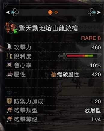 熔山铳拥有最高等级的放射4,加之放射铳本身不俗的龙杭炮伤害。