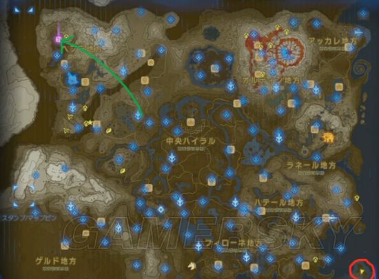 因为要尽可能地延长飞行距离到10000米,所以视频给出了一条由地图西北「へブラ地方」飞向东南「サイハテノ島」的路线。