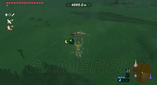 因为重设了起点,所以当飞到原来的塔上方的时候,林克已经飞了三千三百米左右。