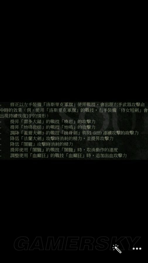 还漏了一张图之前没看到...是降低双特大战技和l1的转向功能,但是提高l1的面板以及减少耗精,总觉得意思就是比以前更送菊花了。
