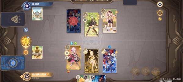 △因为原牌情况多发.这是最基本的打法思路. 1、先上莫娜,挂水开盾,有循环场地牌就上,没有就手中减消耗牌使.多血量和回复.就用来换骰子色.记住能省就别省,但要留一点技能点用被动切女仆