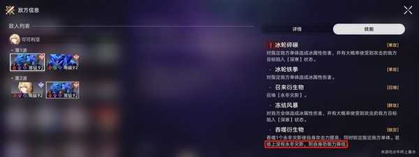 优先击破弱点,黄泉队尽量存一个黄泉的终结技,在第二波次的时候直接开大,赶在召唤【冰峰】之前击破,只有一个阶段,这一期的忘却比较简单;