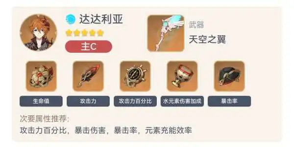 公子达达利亚五星武器首选新出的【冬极白星】,钦定公子专武,或者【飞雷之弦振】同样是适合公子顶尖武器。其次可以选择老牌五星劳模【天空之翼】,更加容易达到毕业面板。虽然五星弓内卷严重,但天空弓仍处在一个不低的地位。