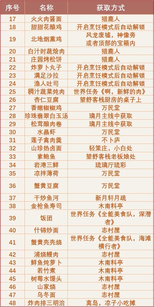 《原神》中食谱能够使用对应素材合成拥有更强恢复效果的食物,想要收集截止到目前版本全部食谱的玩家请看下面“祈1”带来的《原神》2.6版本全食谱获取方法汇总,希望能够帮助大家。