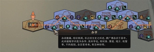 奇遇中蓝色格子代表满足条件可以获得奖励。例如此处我们的杂学天赋高于20点,即可获得此格子的对应奖励。右侧为奖励类型,宝箱为各种物品。卷轴为历练。紫色图标为威望。
