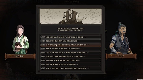 然后跟义父对话选择第二个,“只怕并非是什么好武功”,然后就到下面这个界面