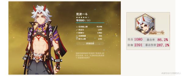荒泷一斗,0命,90级,没有装备武器和圣遗物: