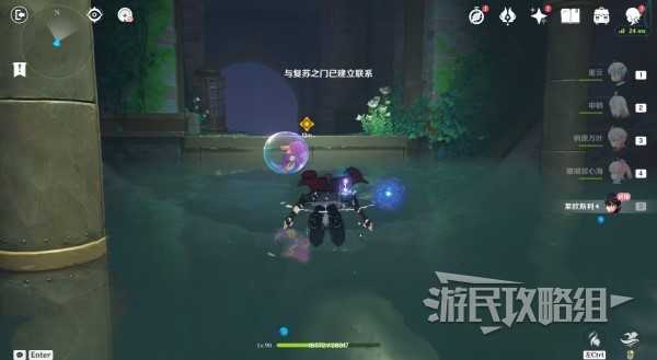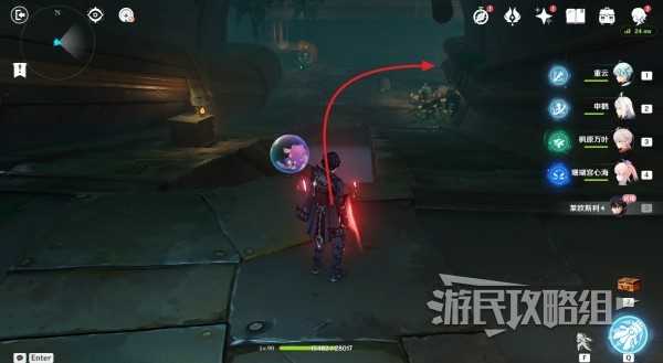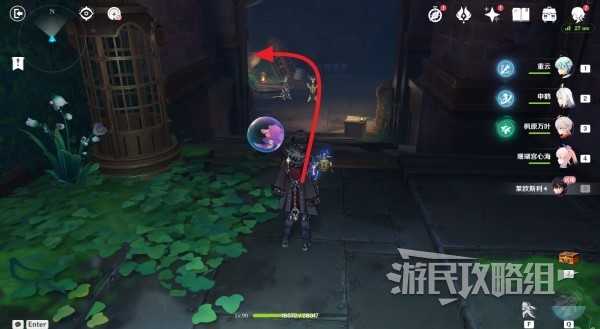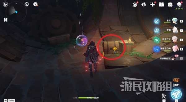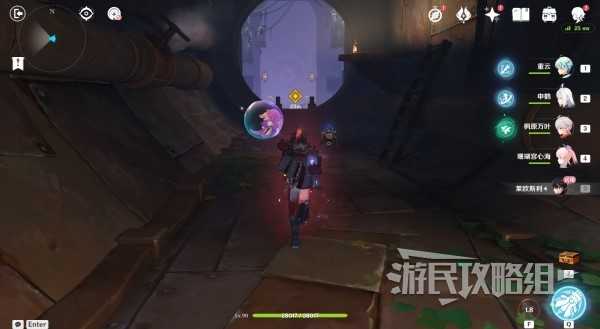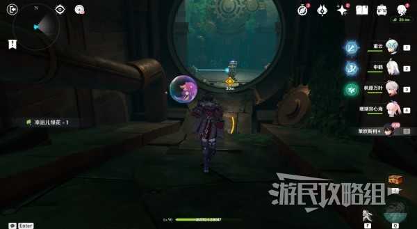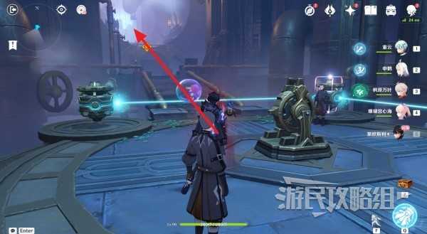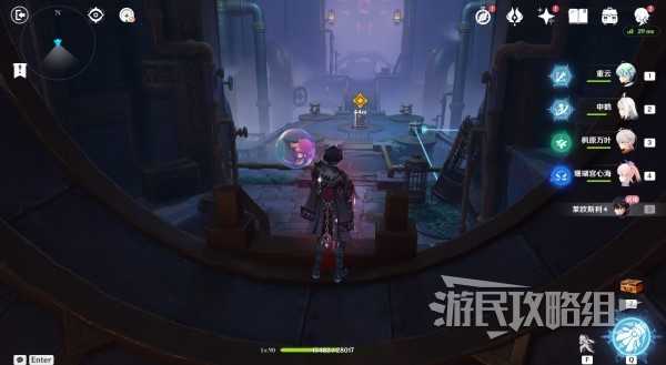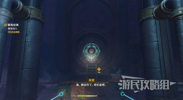 对话播放完毕后,继续跟随任务指引沿路前进,走到转盘机关处。