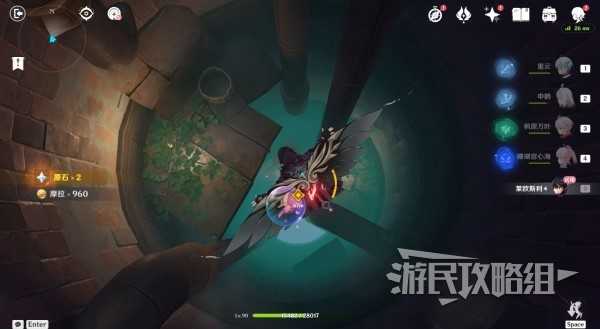 开启宝箱后继续跟随任务指引前进,跳到前方的大洞中,注意不要摔死。