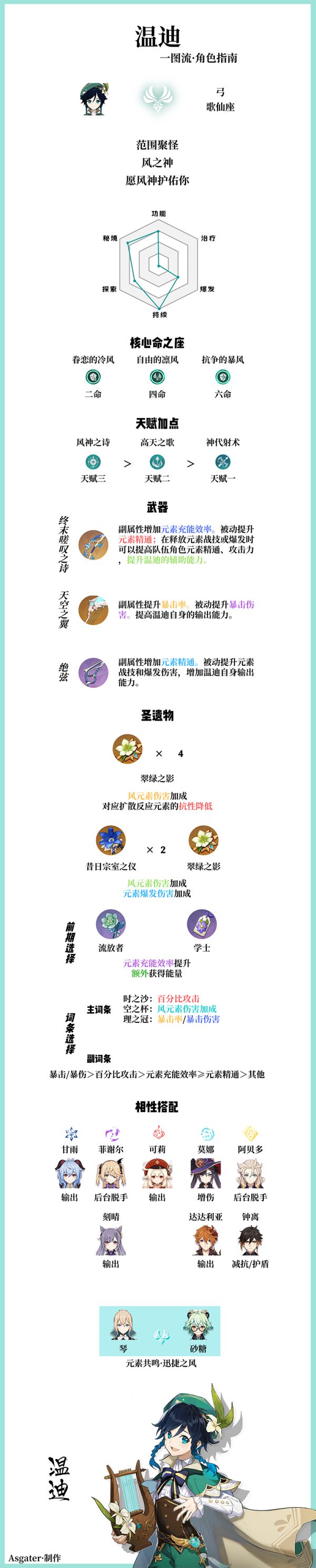 如果在公测首发版本中没有抽到温迪的话,也能在现在的1.4返场中继续抽,有了温迪的话,对深渊的帮助是很大的。下面请看由“Asgater”带来的《原神》温迪出装与队伍相性搭配详解,一起来看看吧。