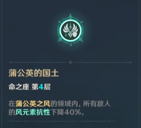 第4命座在会让风元素伤害增加,提升了温迪自身的输出能力,在搭配第2命座进一步增加输出效率;