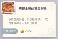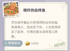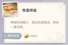每烤鱼一次,对应的菜品都会获得一定的摩拉奖励!