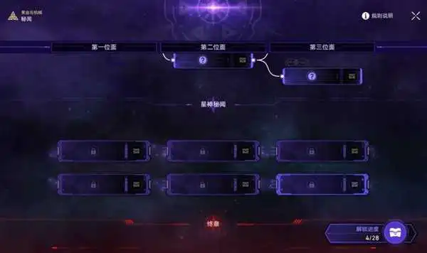 可以从这里观看自己的剧情解锁了多少,还有多少未解锁,这里还有着一部分的星神秘闻,在完成全部位面的秘闻之后可激活,获得金色骰面。