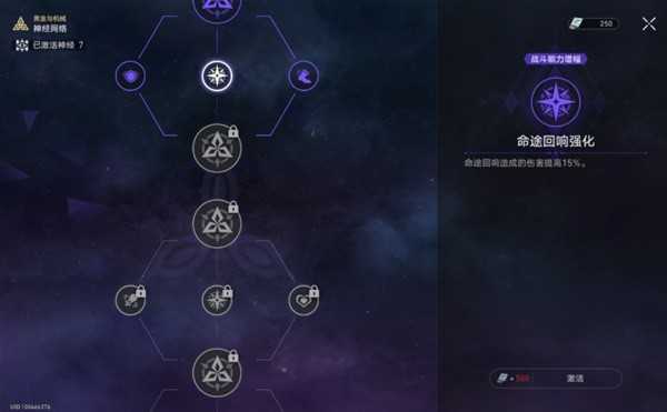 和模拟宇宙的技能树一样,但两者并不互通,通关探索黄金与机械可以获得“神经脉冲”,可以用“神经脉冲”来激活神经网络节点,可以获得额外的增益效果