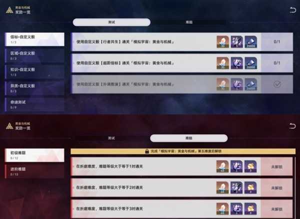 这次的奖励分为测试和难题,每个骰子通关之后可以获得一定的奖励,折磨难度难题等级大于六即可拿取全部的原石奖励。