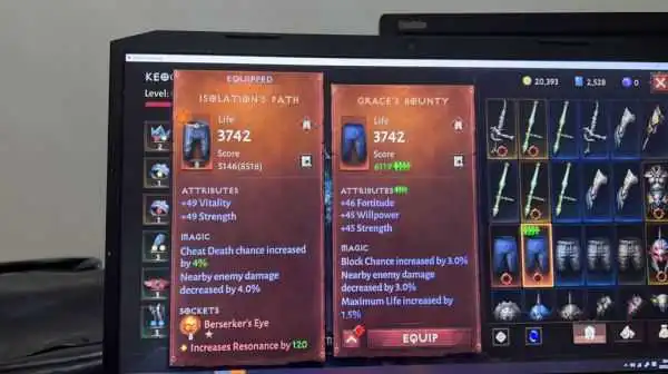 但是一件3条主词缀+3条副词缀(也就是大家说的3+3)装备随随便便就可以提升50战斗等级。在我看来和暗黑三太古装备一样。