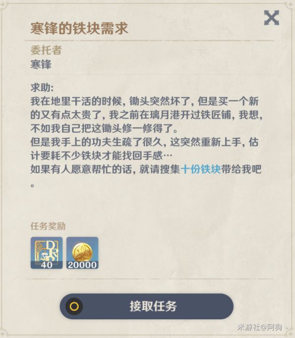 找到委托者后,交付对应的物品即可完成任务,获得声望经验与摩拉奖励。无需再次返回任务接取处领取。