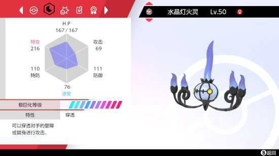 最后一个位置本来用的背心风速狗,后来在ps上试了几把,发现完全没法处理空间,在这赛季仅有的几个空间手里翻来覆去的找,最后决定使用水晶灯火灵这个拥有版本最高特攻种族值的空间手,把aoe进行到底!带客房服务主要是想在空间下更有压制力,不主动开空间直接蹭着空间极巨化输出。