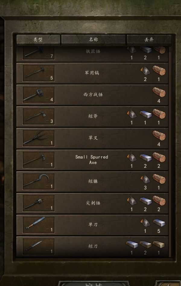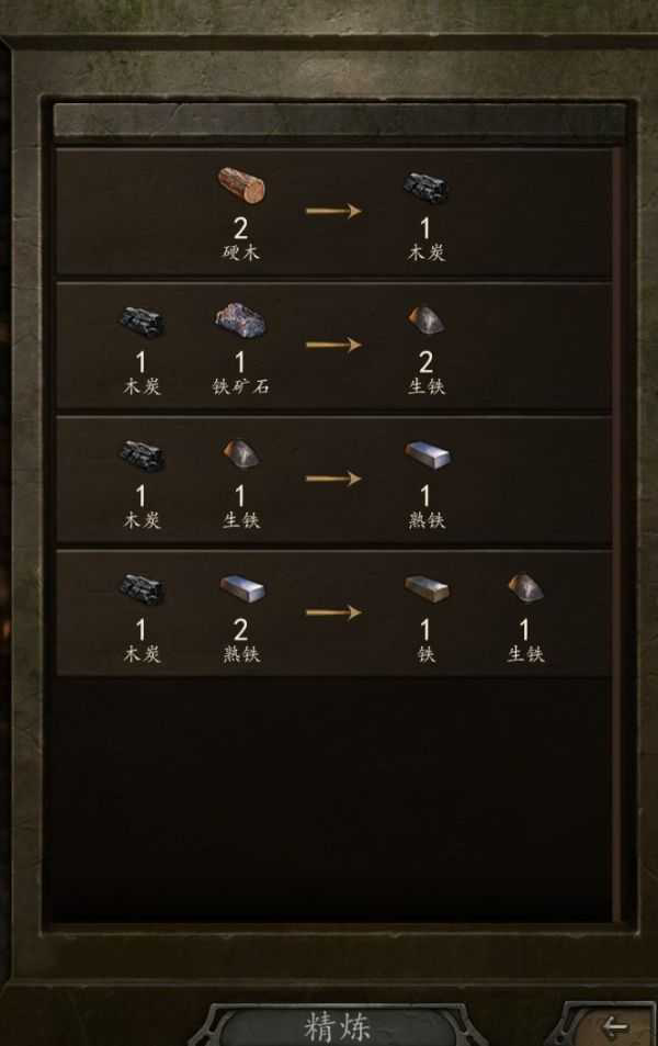 我们只需要拿1生铁2熟铁1木头的质量以上的道具拿来熔,过低的都可以直接丢商店(会亏本)。