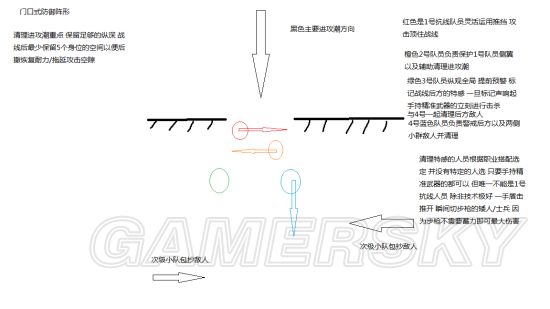 文中的阵型并无绝对,权当一种基础的教学,实际情况每个队伍根据选择的职业,武器,技能甚至地形的选择等等会有更多的选择。