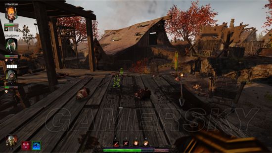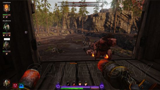 这里吊桥并不是要你站上去,而是在桥头一夫当关,天然的阵型,霰弹枪/龙火炮好好教他们做人。