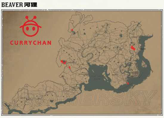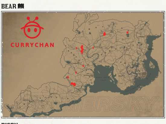 先说一下狩猎心得吧。到达指定区域后观察动物的位置,没有发现的话存档接着重新读档后继续观察。有些动物在夜晚更容易出现。狩猎指定动物时不要在附近猎杀其他动物,否则留下尸体会影响刷出的效率。狩猎到动物皮建议存档养成这个好习惯不会有错的。摸准这几个诀窍以后狩猎就变得非常简单啦,以下是官方动物分布图。