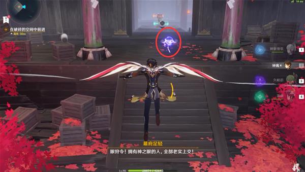 拾取御守放入神龛,左手边解锁风场,那就让我们随风而起,去往正前方楼阁。