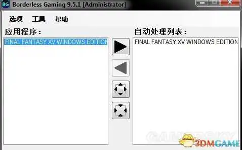 打开BorderlessGaming.exe,找到游戏程序并添加到自动处理列表或手动![]()