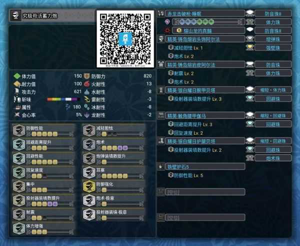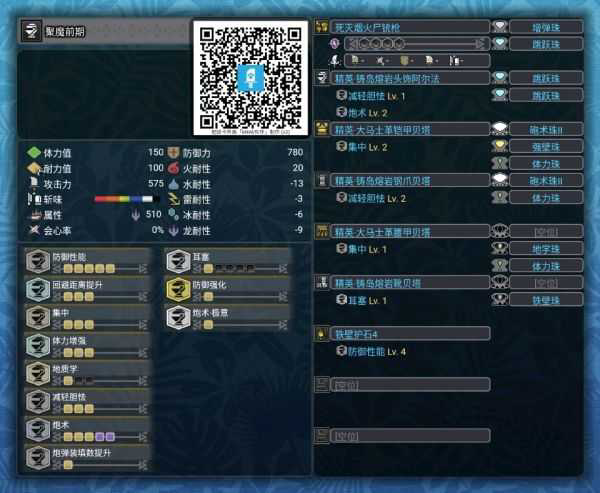 这里用爆锤龙两件套出防性4(实质防性3效果,有珠子可以自行出全)和防御强化,由于珠子爆率问题,实际银火龙出来后也可能会继续使用爆锤龙两件套来出防御强化(当然回铳玩家就没有这个问题)。