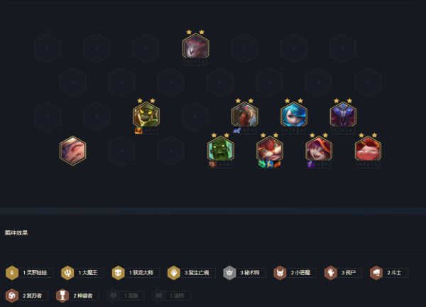 阵容关键羁绊:3丧尸+3复生+法系输出(大头最优,提莫大眼次之)。