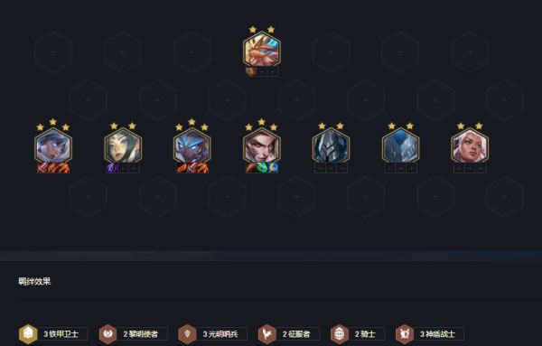 阵容关键羁绊:4骑兵+3铁甲+3神盾。
