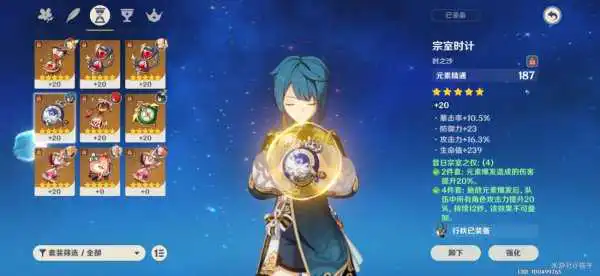 圣遗物位置,元素精通沙漏,攻击加成杯子,爆伤头。武器是祭礼剑or黑剑。