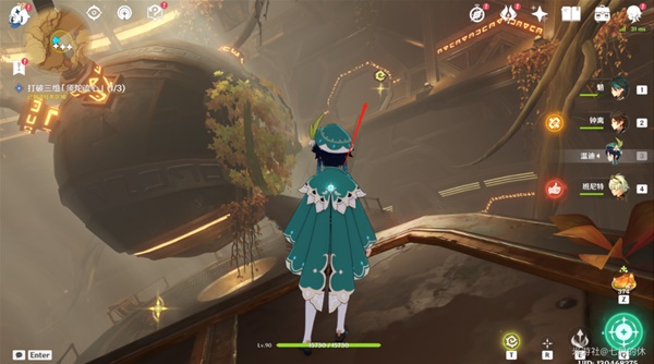 4.继续向前探索,继续射绿球,借助四叶印往头顶上飞,记得点亮传送点,跟着齿轮的仙灵走,射绿球
