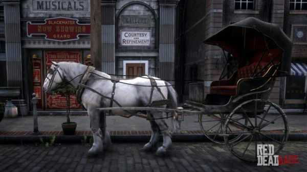 然后就可以用这个马车进入新澳斯丁,途中会一直中子弹的,但马车会把子弹挡了,重点是要把镜头长期定在马车能把阿瑟完全遮盖的样子,尤其是头部一定不可以露出。
