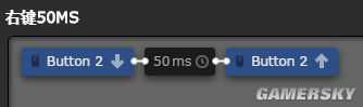 然后我在赛睿驱动里设了一个右键50ms松开的鼠标宏,多次计时13帧,3帧/(60帧/s)=0.05s=50ms,多出来的时间就是按下右键到松开的耗时(测了一下我自己放松状态下点右键延时在40ms到80ms不等,专心连点右键可以到30ms)。