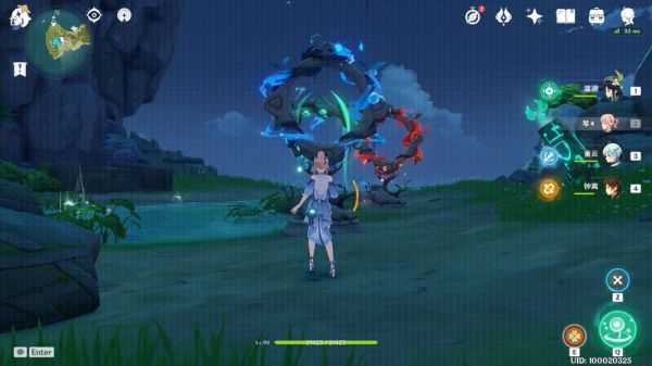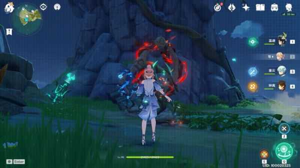 这里进入通道同样有很多方法,例如通过击败风史莱姆产生的风场、收集风种子产生的风场、温迪的元素战技、捕风瓶、以及直接从上方传送点飞下来等等……这里就不一一举例说明了,各位旅行者用自己习惯的方式进入传送通道即可。