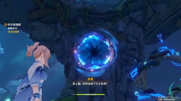 在危危岛的山顶上,我们发现一个仙灵静静漂浮在远处,漫无目的地原地打转,似乎在等着我们靠近它,让它为我们引路。靠近仙灵即可触发世界任务「归乡路漫漫」。