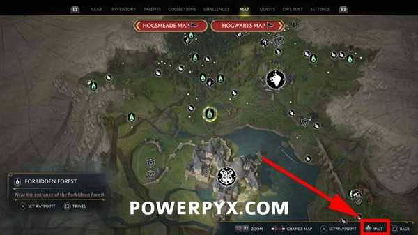 注:此功能在某些位置无法使用,如果右下角没有出现这个按钮提示,那么来到霍格沃茨校区之外就能用了,随时都能更改时间。