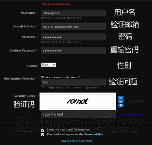 然后自己填写,自己能记住用户名,验证邮箱(必须外国邮箱),自己能记住的密码,性别,验证问题(百度搜索或谷歌翻译回答),验证码(翻墙才能显示)