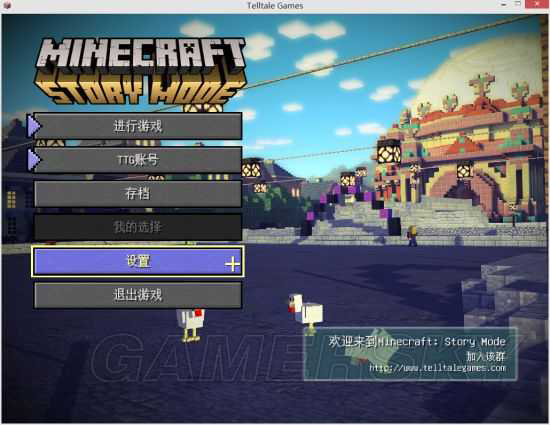 如图所示,进入游戏开始界面,“设置”进入选项设置;