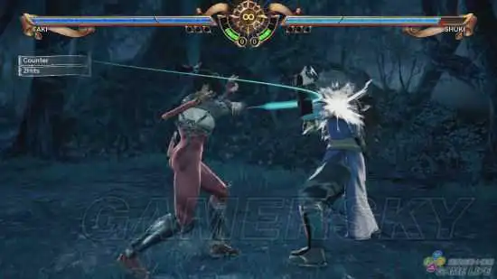 基本上《灵魂能力6》的操作就是横砍、纵砍、踢击、防御,再加入破防技、必杀技、摔技等下去做延伸,而游戏中也会使用不同的代号来代表这些动作,例如横砍是 A、纵砍是 B、踢击是 K、防御则是 G,对 Xbox One 手把来说时常会把 AB 和 AB 键搞混,需要花一点时间习惯。