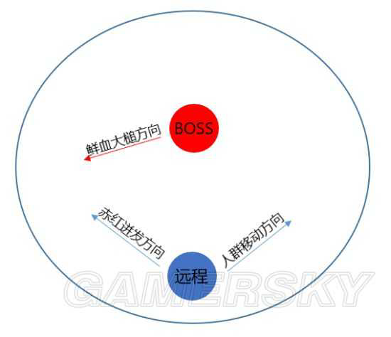 被点赤红迸发放到人群左手,人群往右移动留出下一次的空间和鲜血大槌的距离。