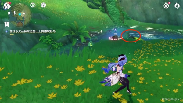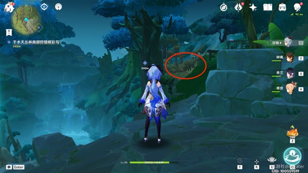 3.首先是水天丛林南部的点位狩猎瞑彩鸟,推荐从下图的副本前进,缓慢推进,切出弓箭角色!