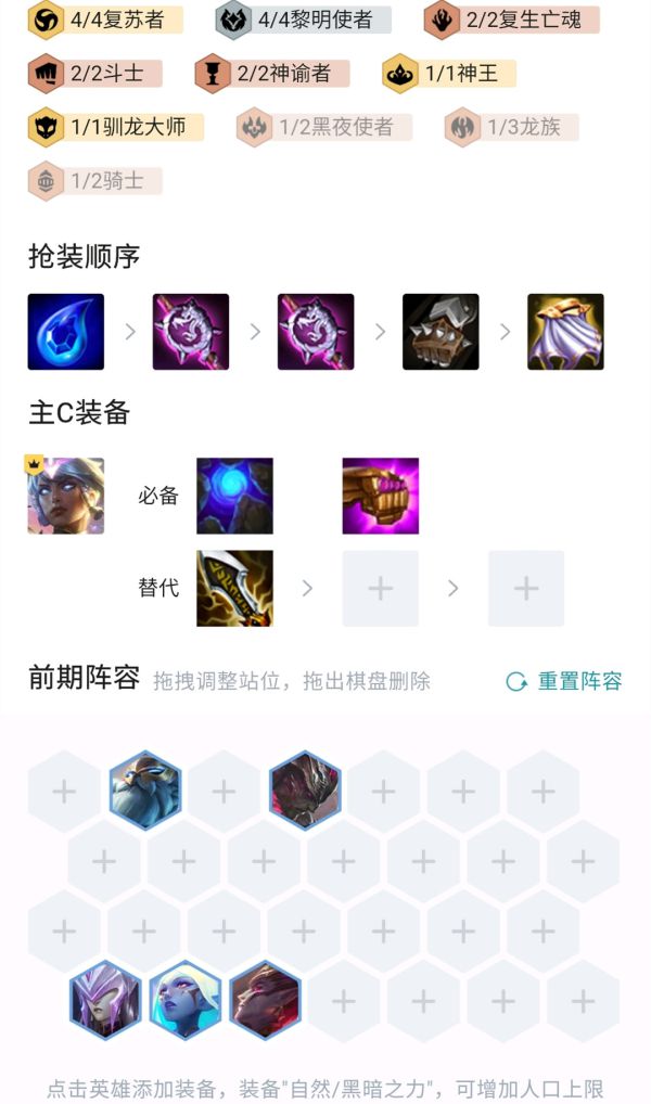 《云顶之弈》黎明卡尔玛这套阵容相信大家或多或少都了解过,那么在11.10版本中如何运营比较好吃分呢?请看“贴吧用户_0P1Wt2y”分享的《云顶之弈》11.10版黎明卡尔玛阵容玩法思路,希望能够帮助到大家。